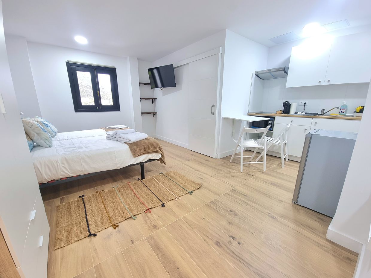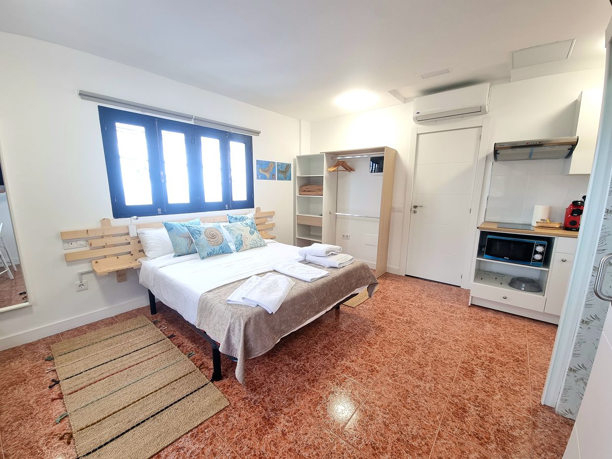 Cama de 150cm. Cocina con frigorífico, microondas, vitrocerámica y todos los utensilios necesarios para que tu estancia sea perfecta.
